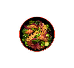 Salmon, avocado, snow peas, edamame, pickled red onion, sushi rice & poké sauce