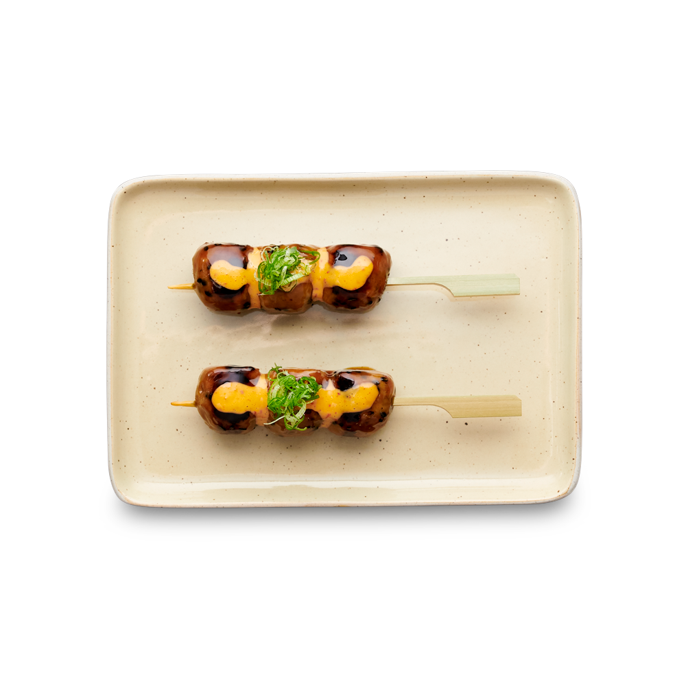 Chicken meatballs, chili dip, teriyaki & spring onions